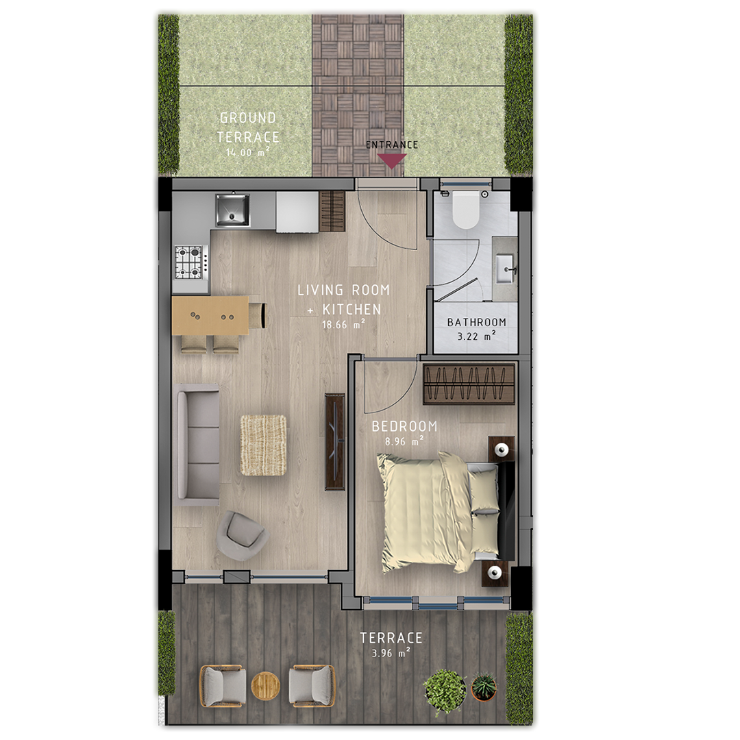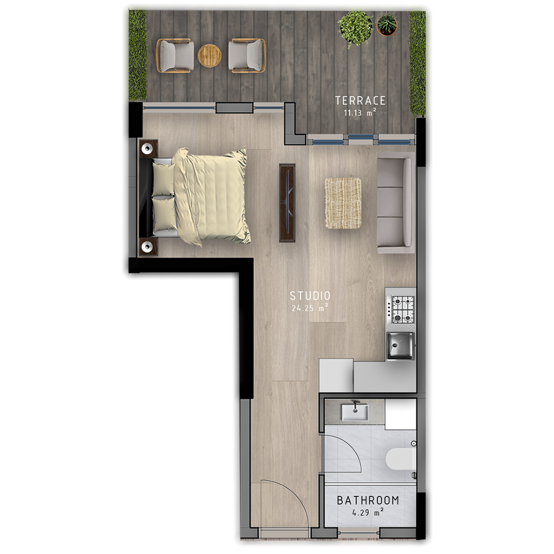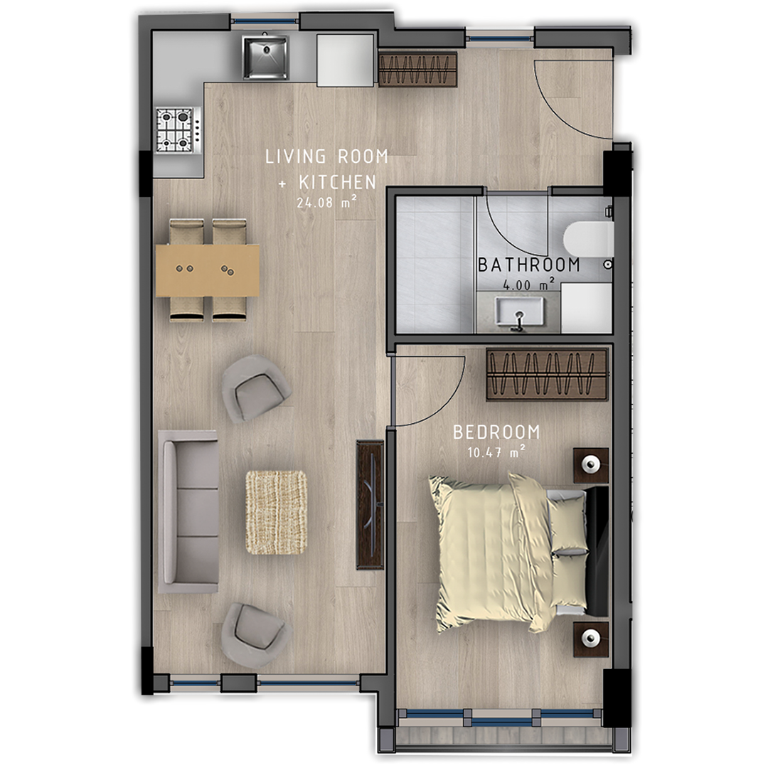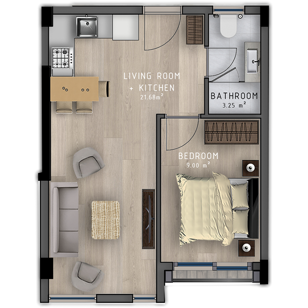 - 1+1 apartments are presented in 5 different types, all our consumers can choice any of those.